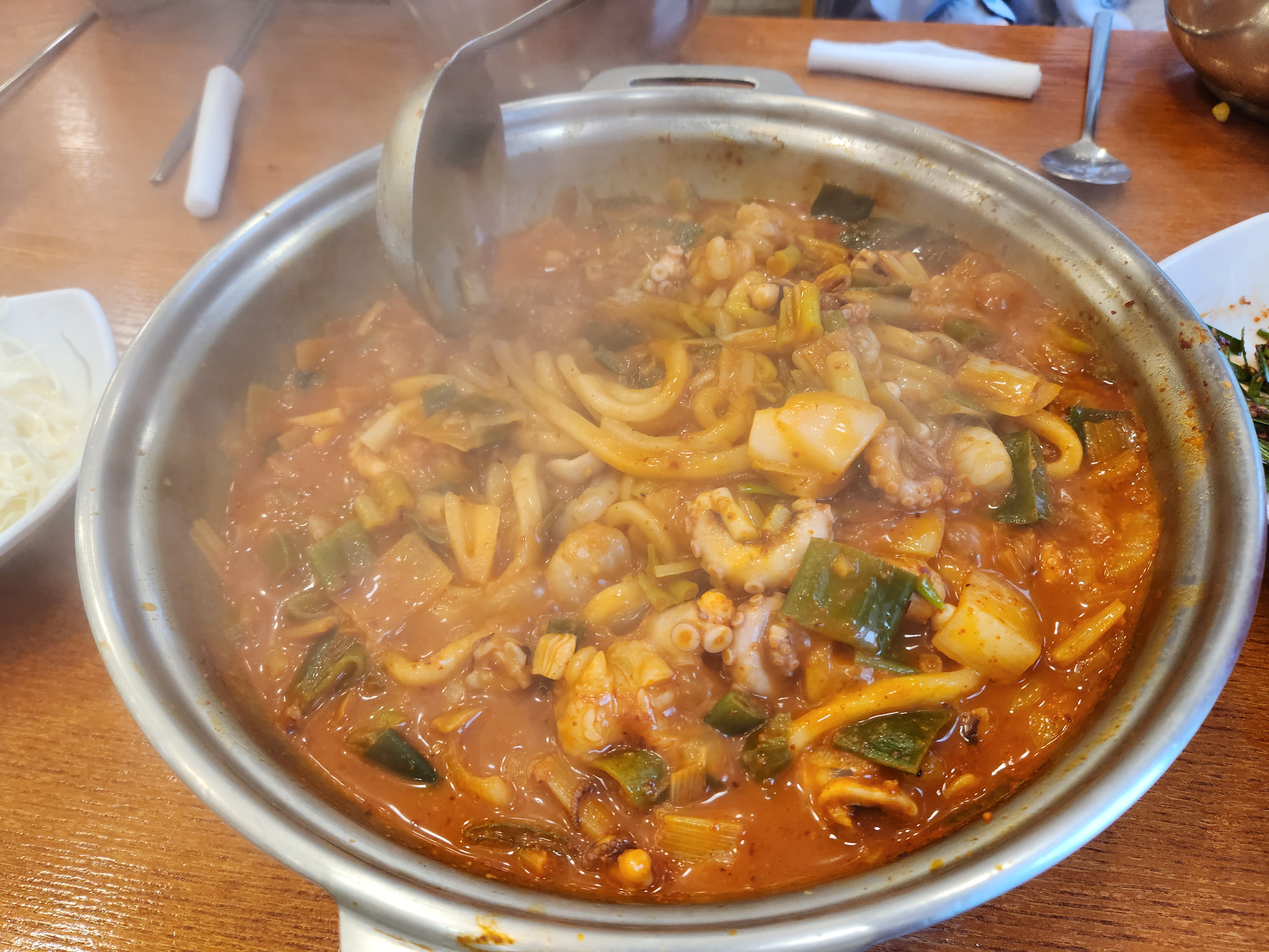 맛집답게 바로 나온 낙곱새 냄비